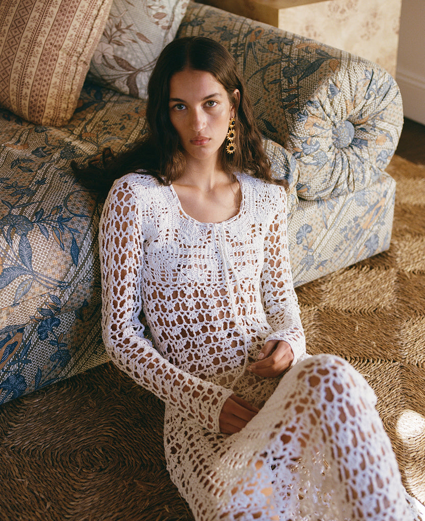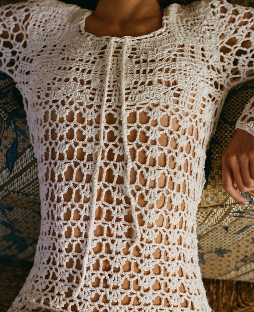 This piece of clothing is a delicate beauty and needs to be handled with care and appreciation. We suggest soft hand washing or dry cleaning your garment. Do not machine wash. Line dry or dry flat for crochet dresses, cool iron. Do not bleach.