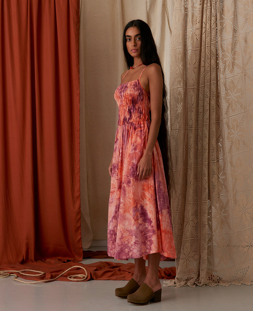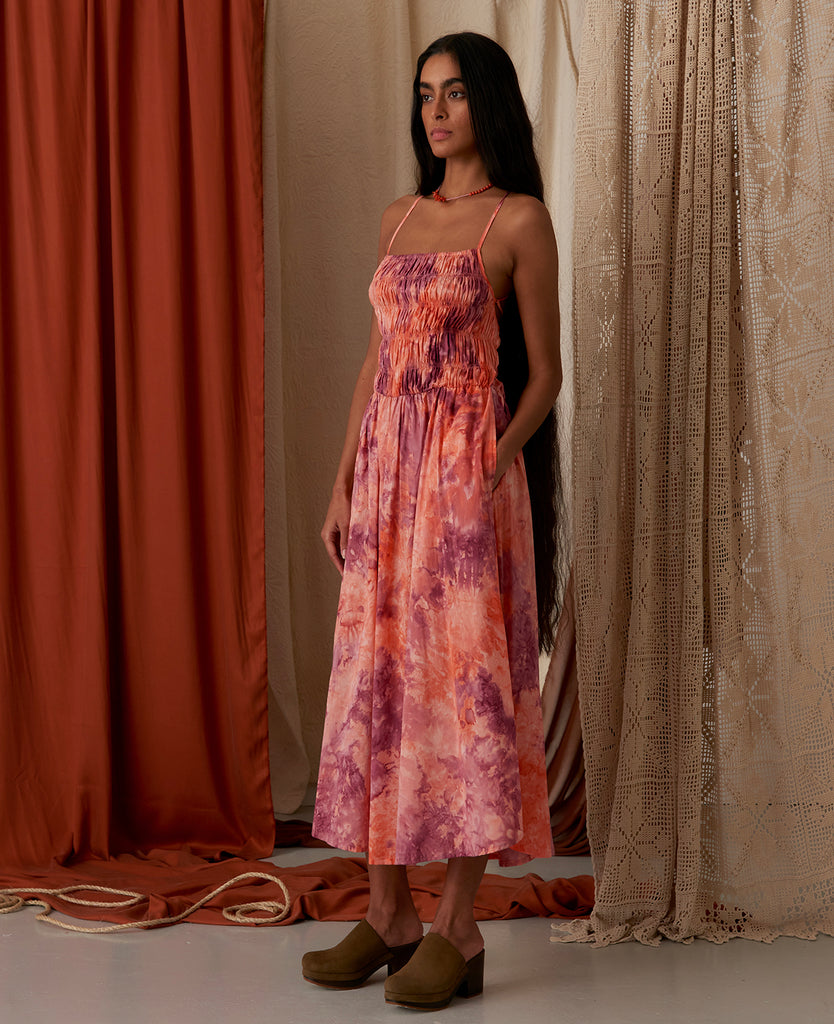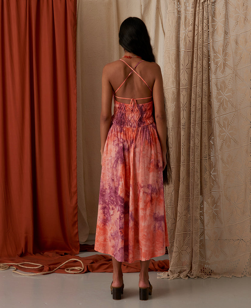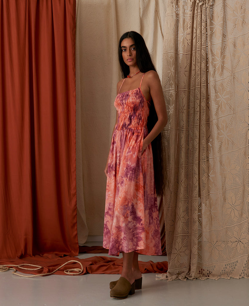 • Tie Dye print in plum, lavender & peach