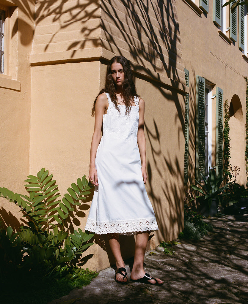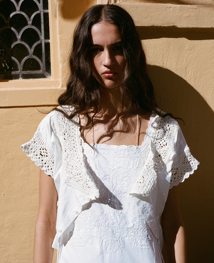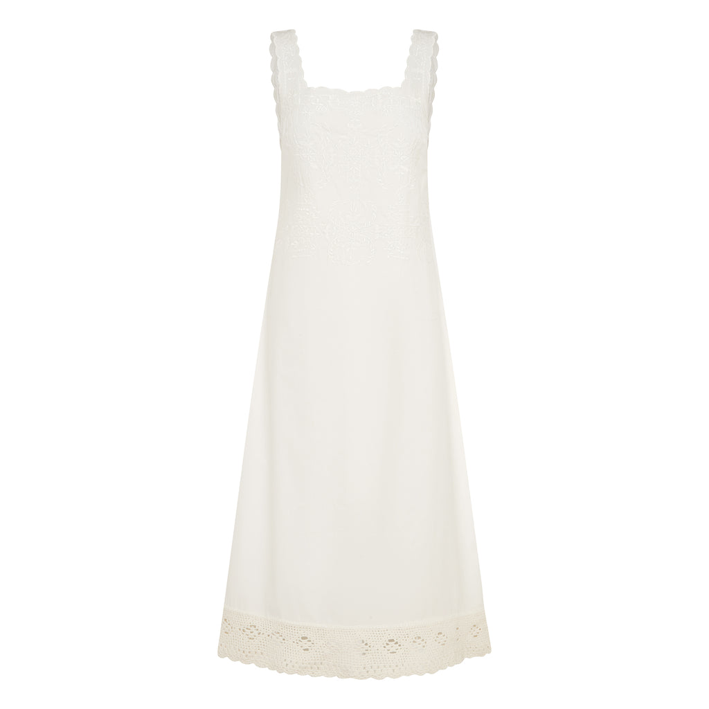 - 100% Cotton Poplin, with hand crochet border on hem