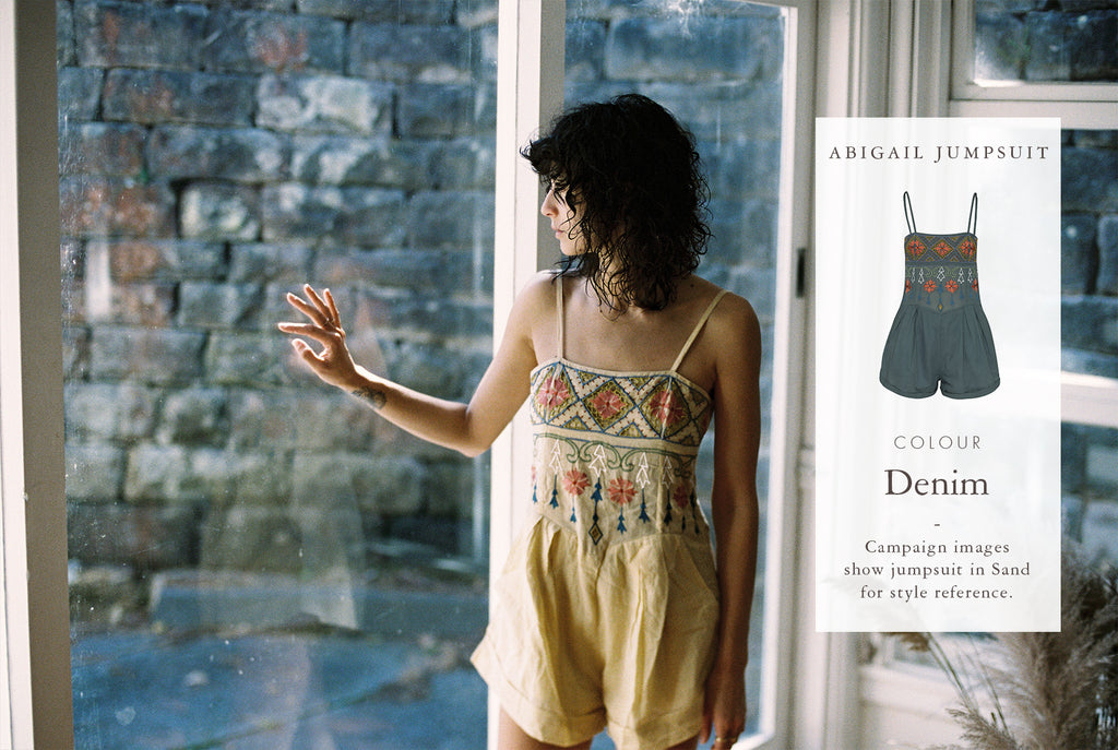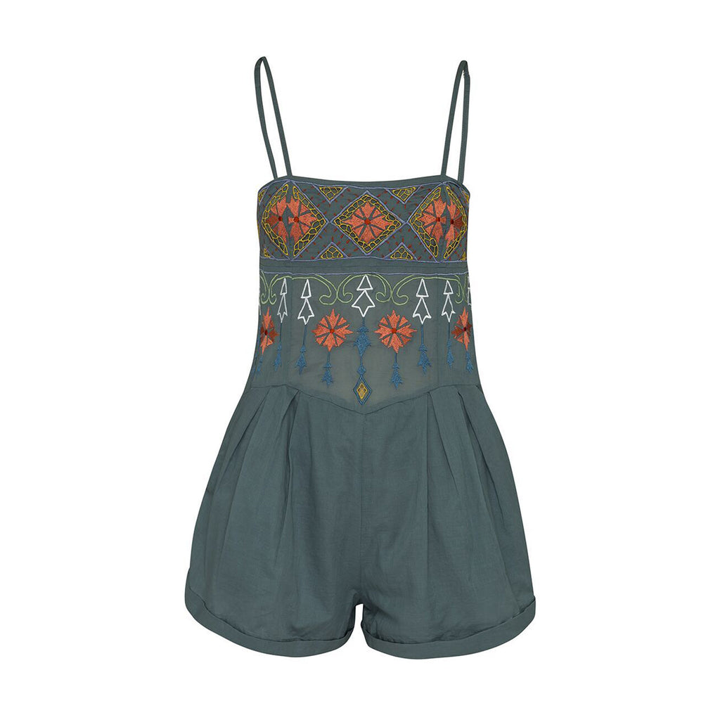 • Intricately embroidered jumpsuit, fitted bust with delicate adjustable straps.