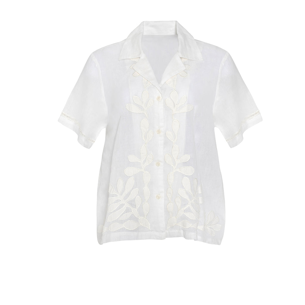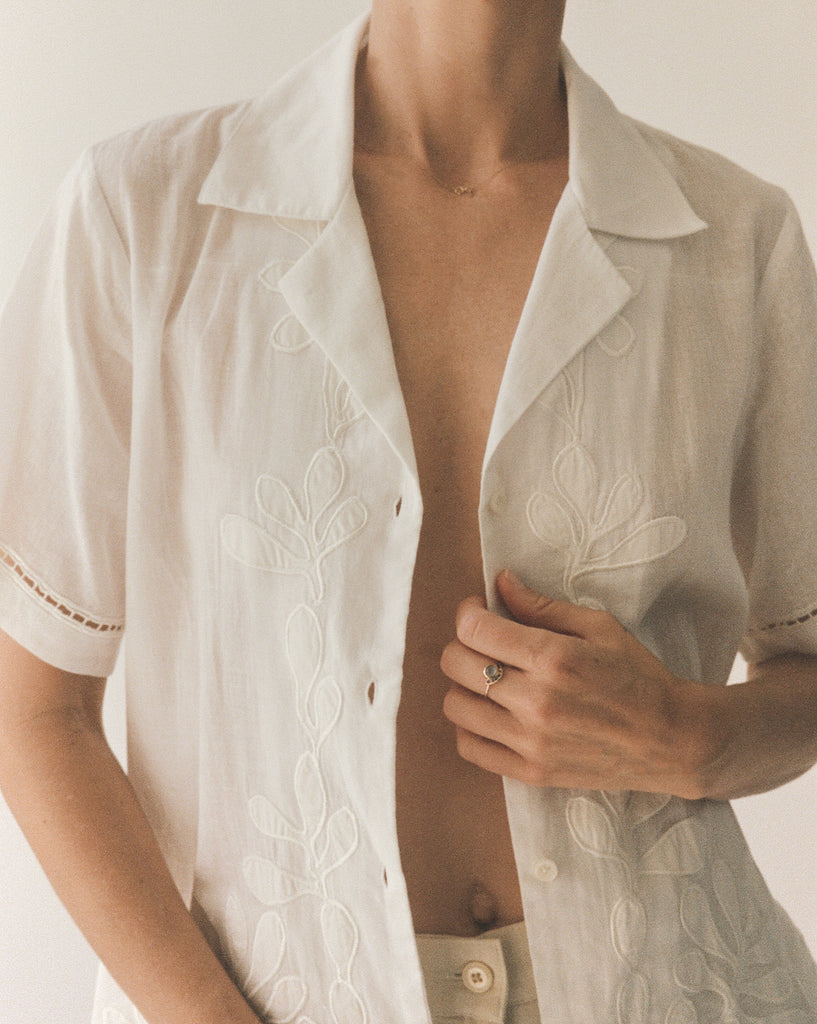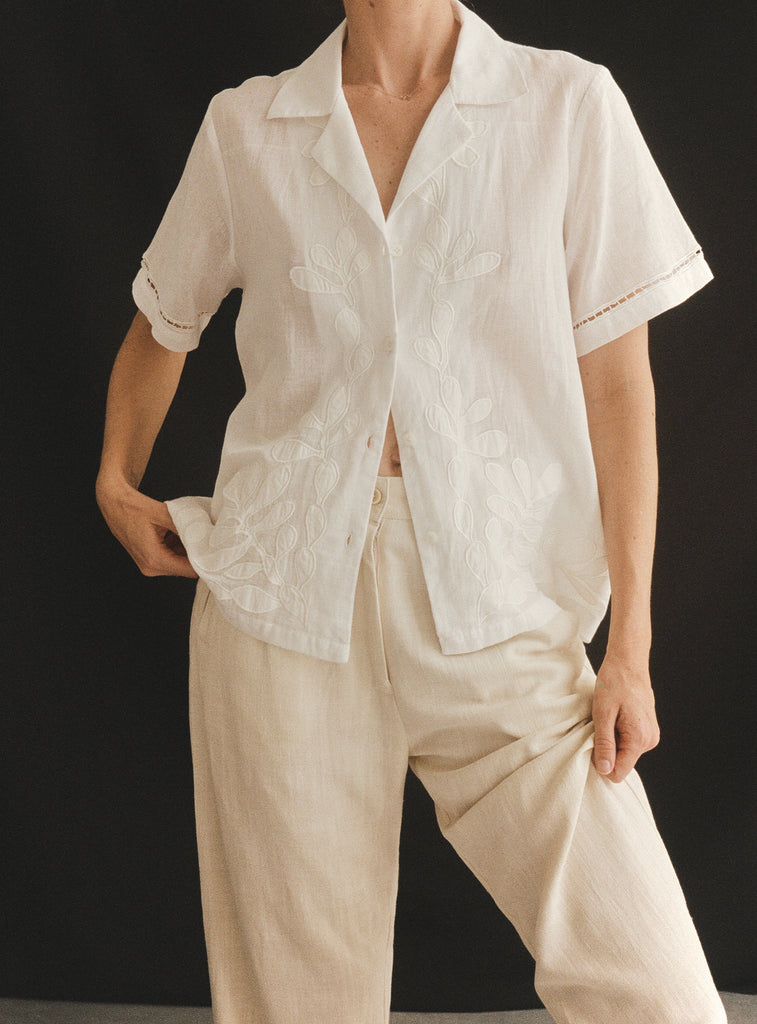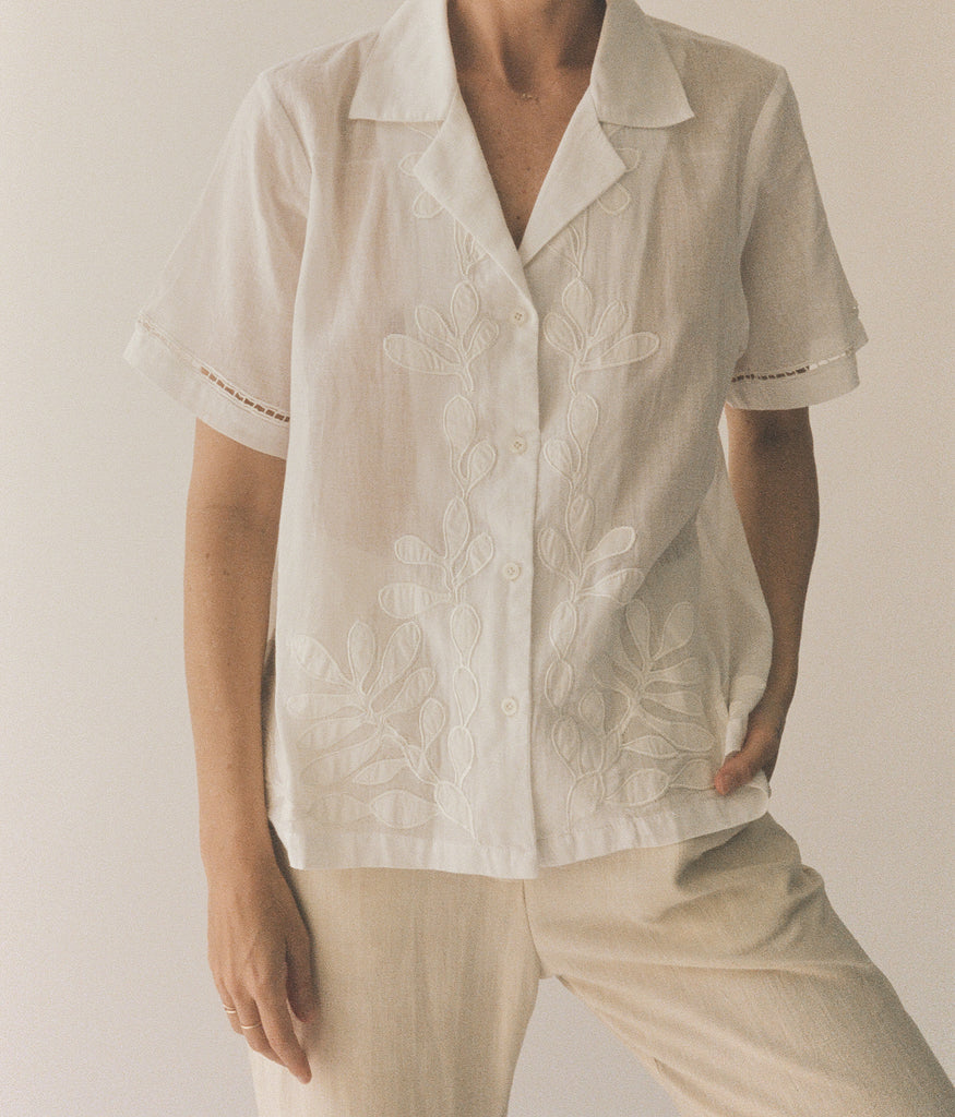 - Contrast Leaf Applique, embroidered overlay in tonal white
