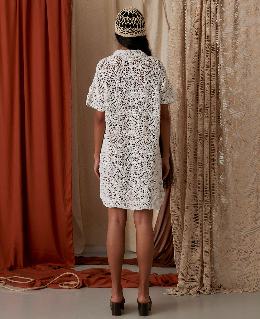 This piece of clothing is a delicate beauty and needs to be handled with care and appreciation. We suggest soft hand washing or dry cleaning your garment. Do not machine wash. Line dry or dry flat for crochet dresses, cool iron. Do not bleach.