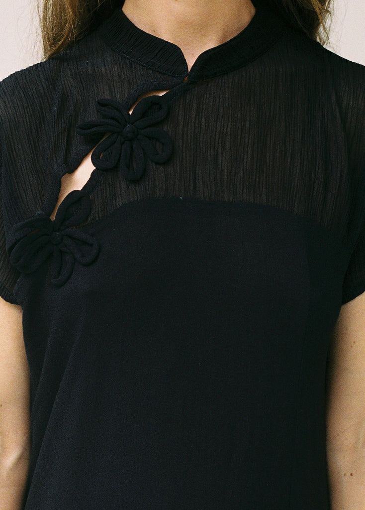 - High Neckline, with a Floral hand made closure