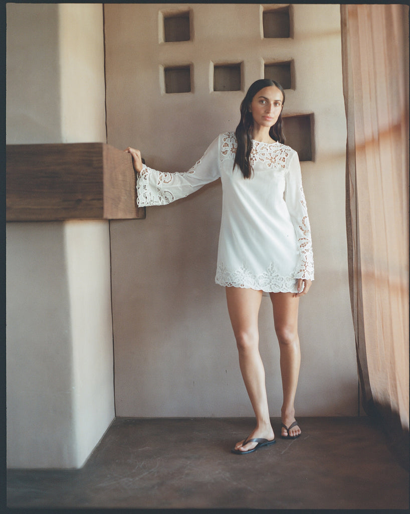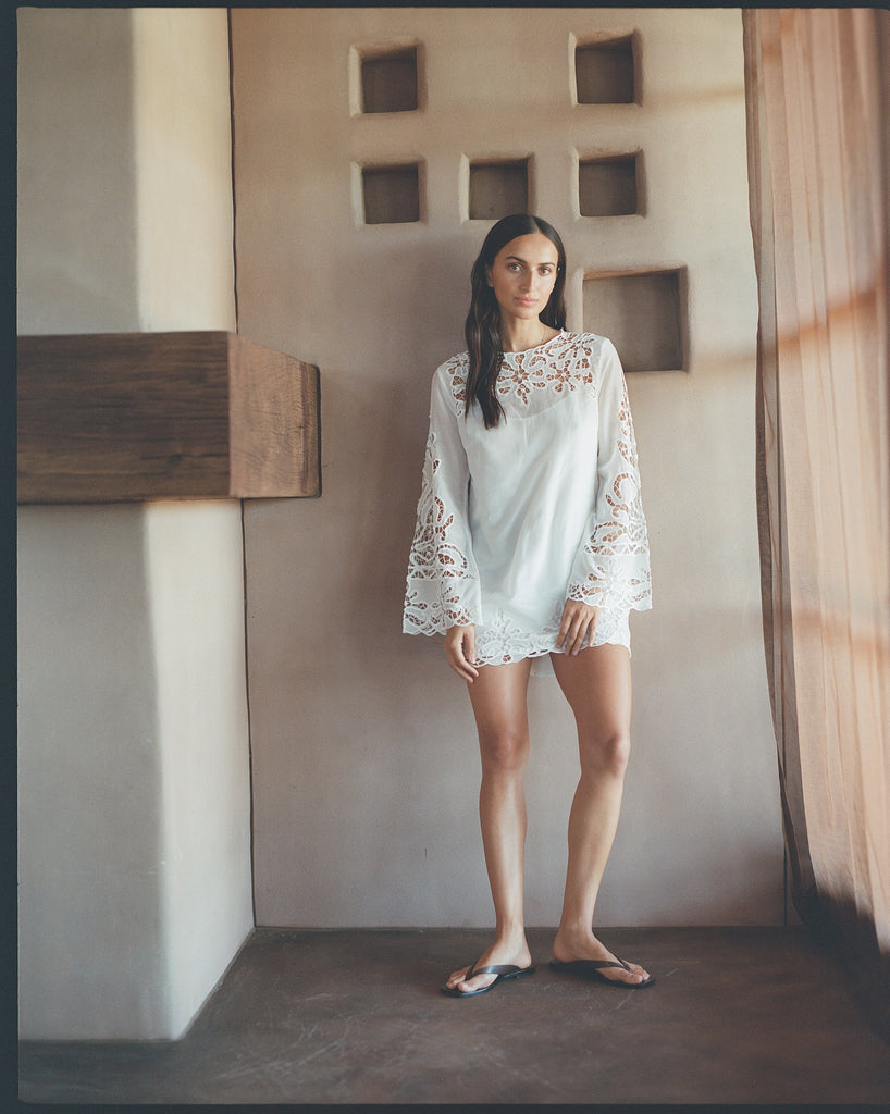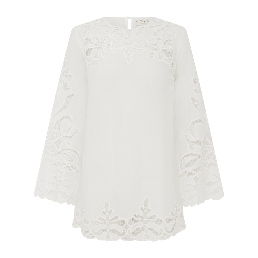 - Long Bell Sleeve with hand cut work lace