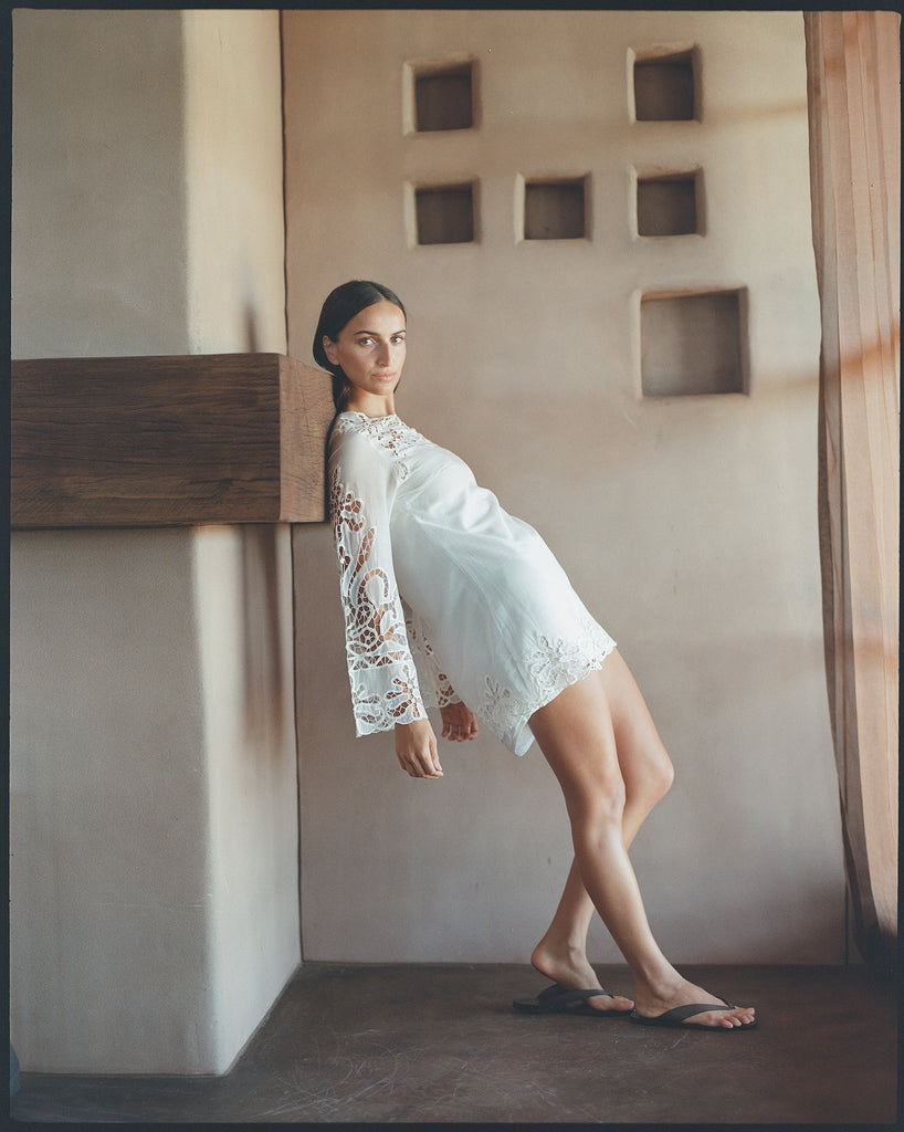 This piece of clothing is a delicate beauty and needs to be handled with care and appreciation. We suggest soft hand washing or dry cleaning your garment. Do not machine wash. Line dry or dry flat for crochet dresses, cool iron. Do not bleach.