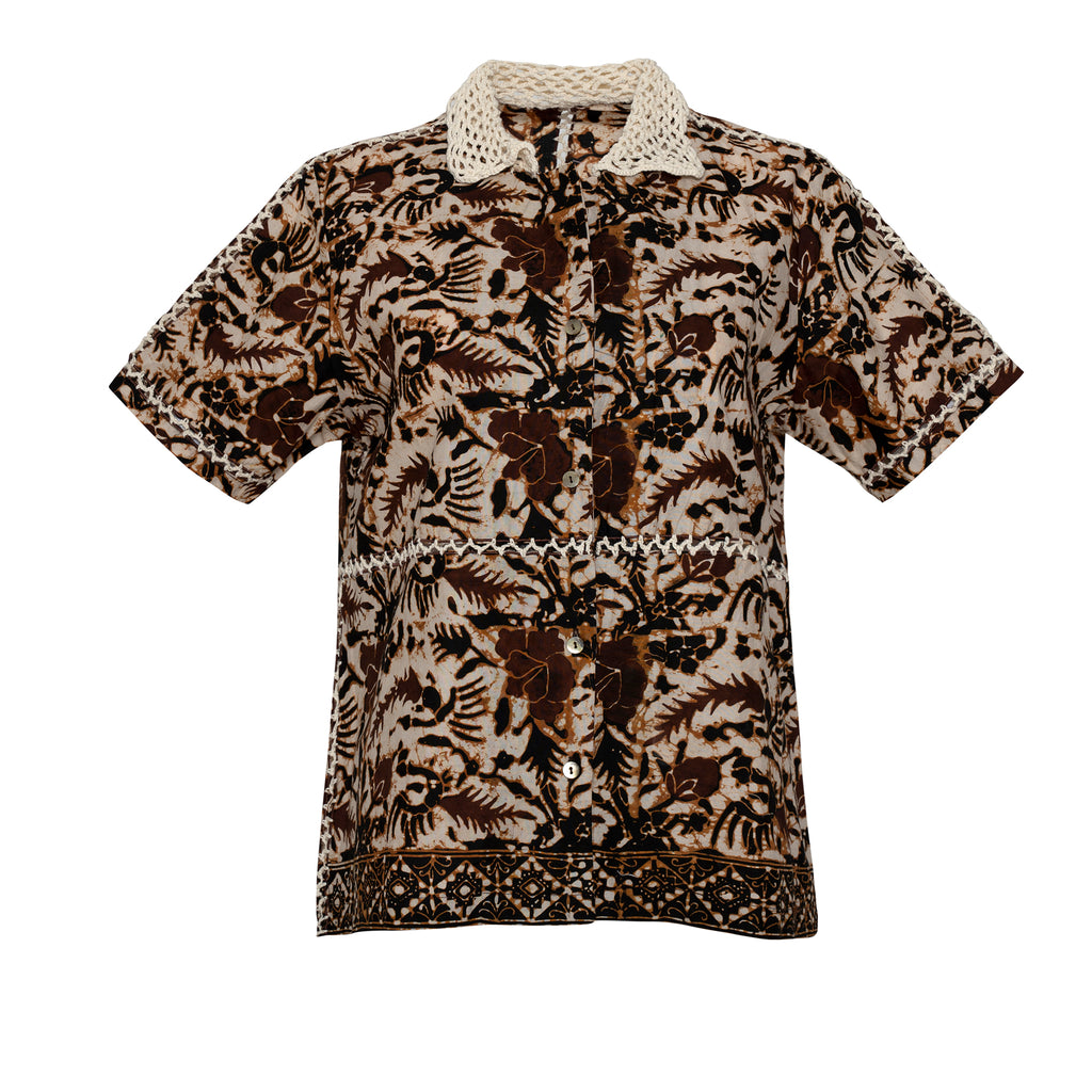 - Indonesian Batik with Cotton Crochet Patchwork Shirt