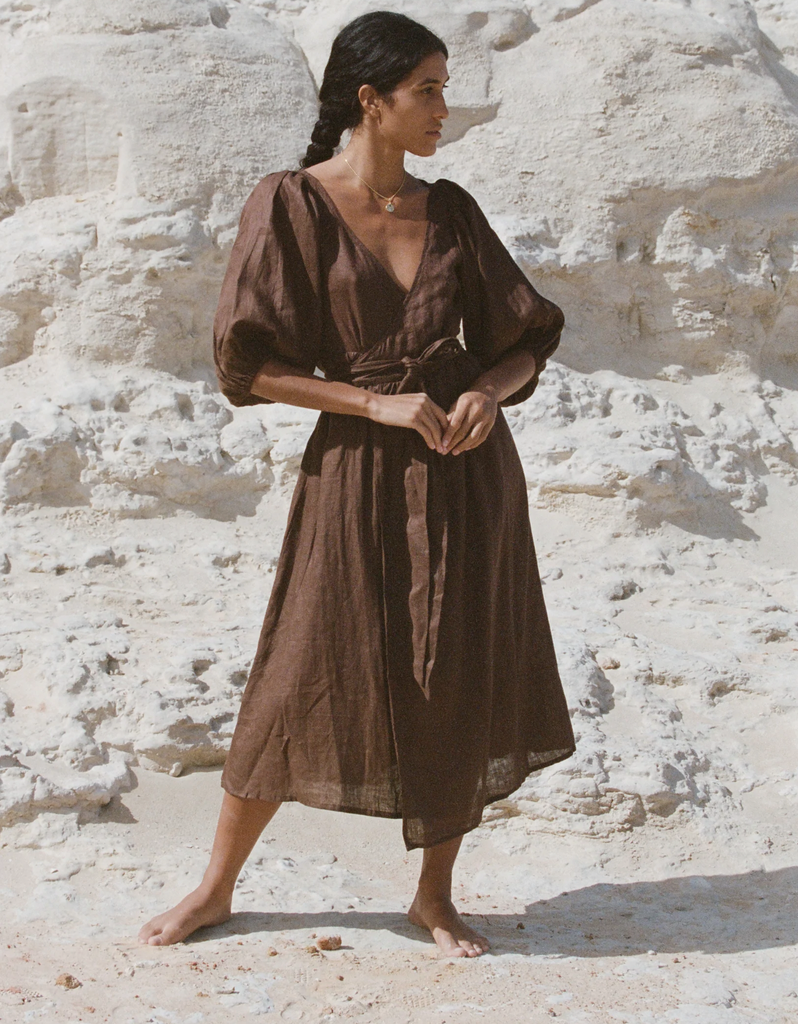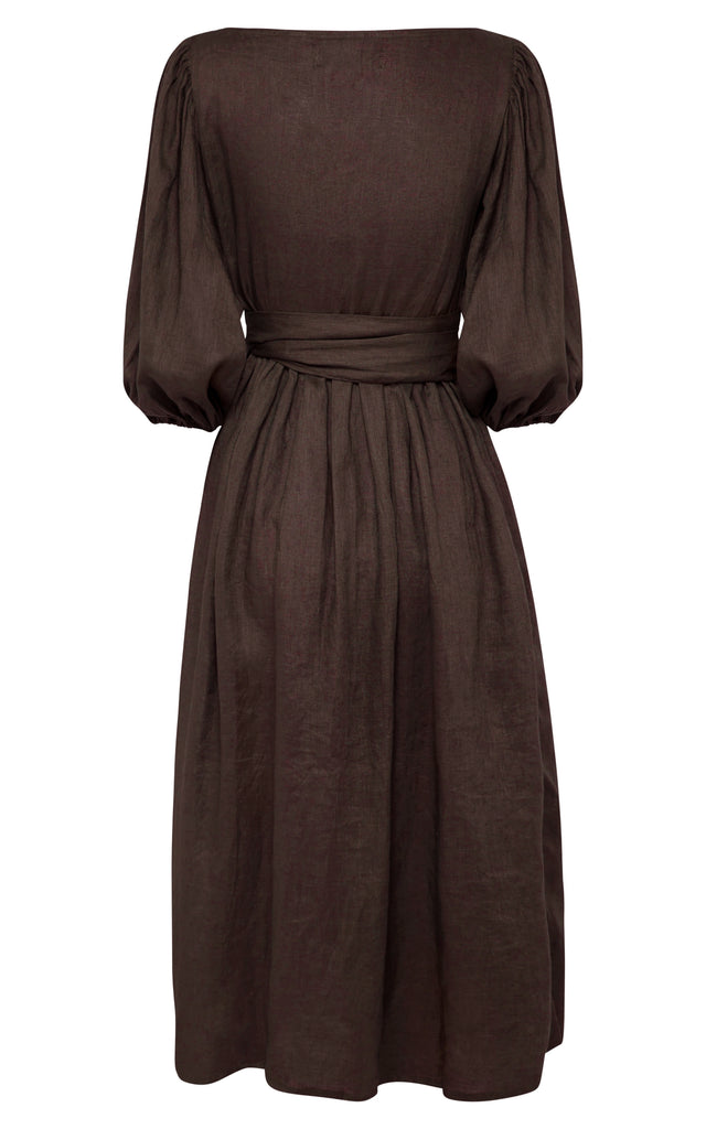 - Deep V neck, midi wrap Dress, oversized baloon sleeve.
