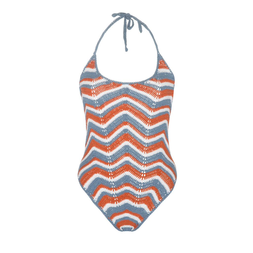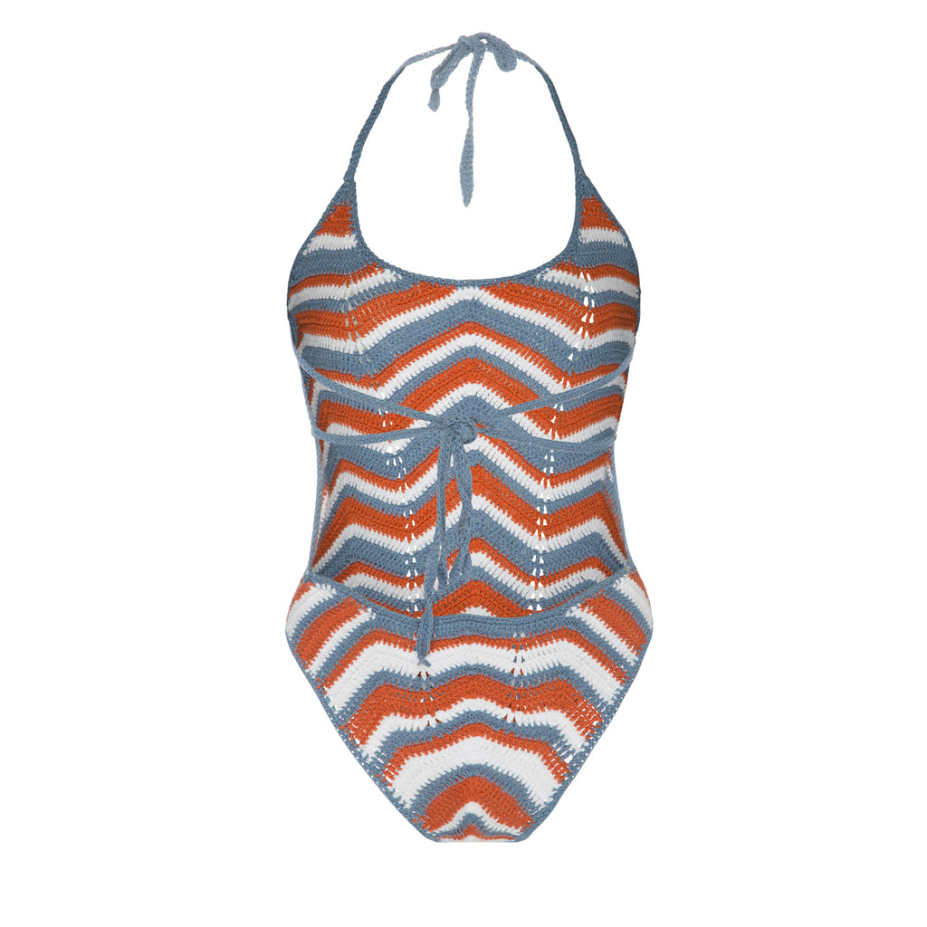 - Three colour chevron zig zag design halter neck Maillot.