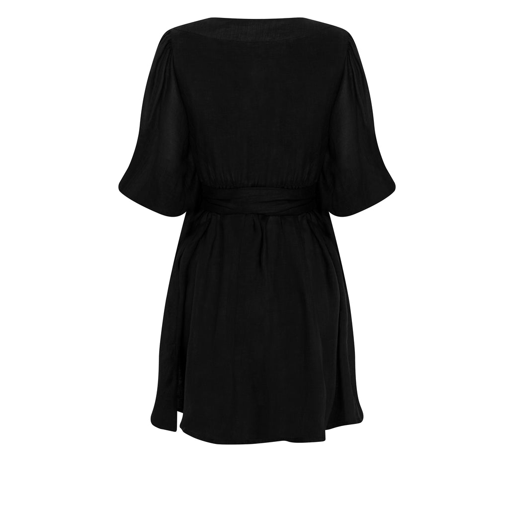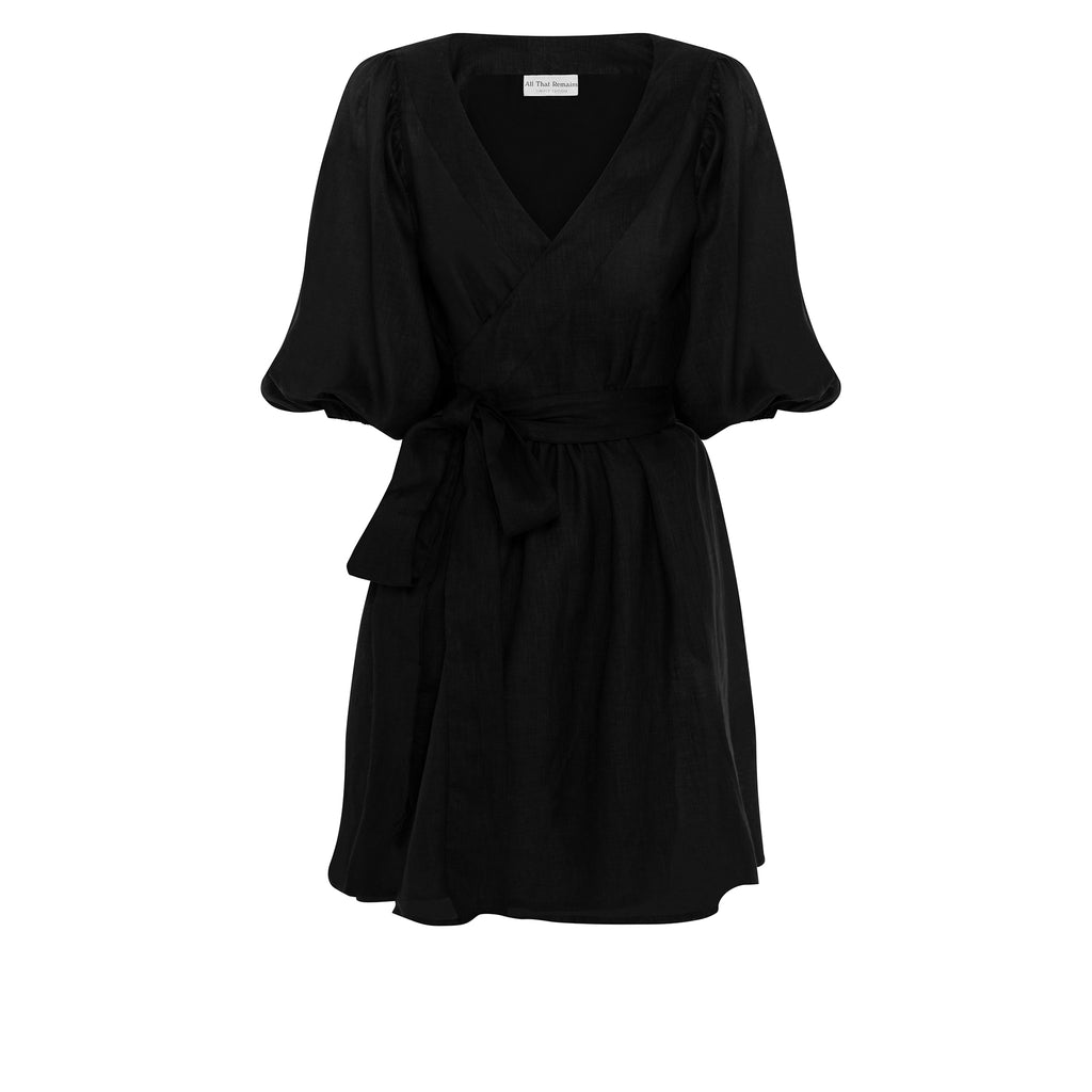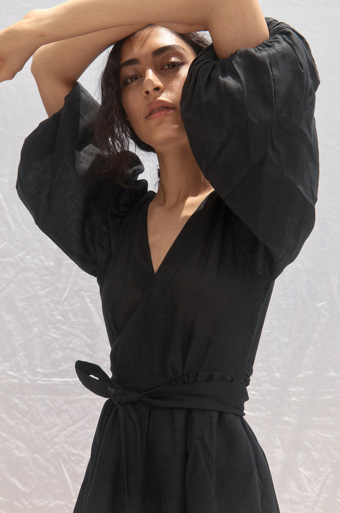 - Deep V neck, midi wrap Dress, oversized baloon sleeve.
