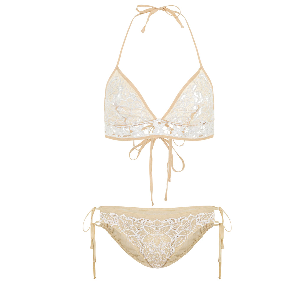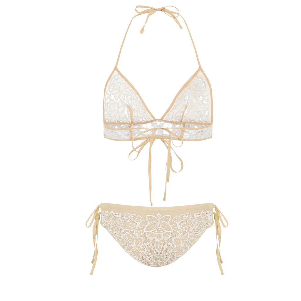• 100% hand cut cotton lace bikini set.