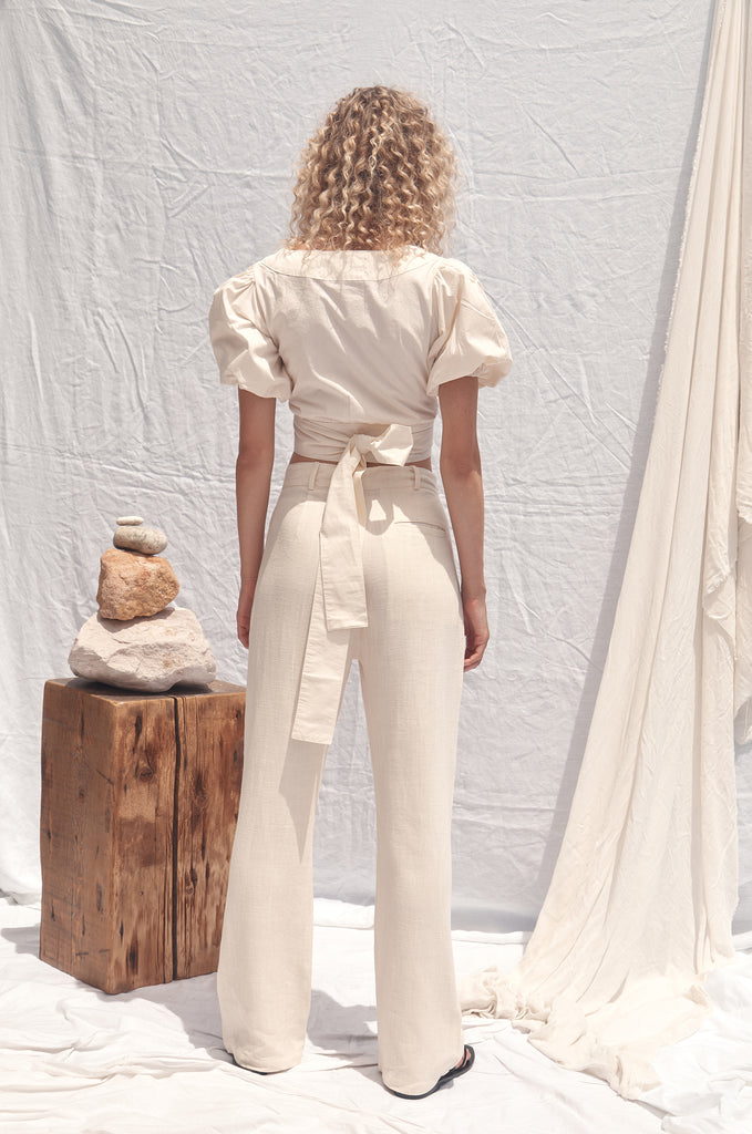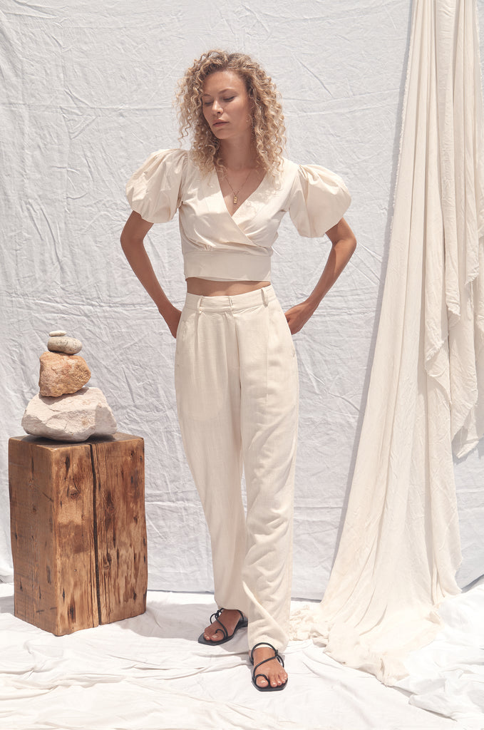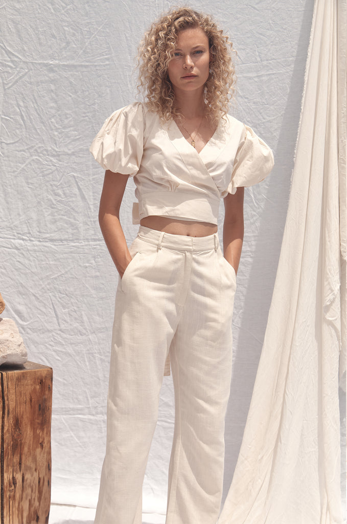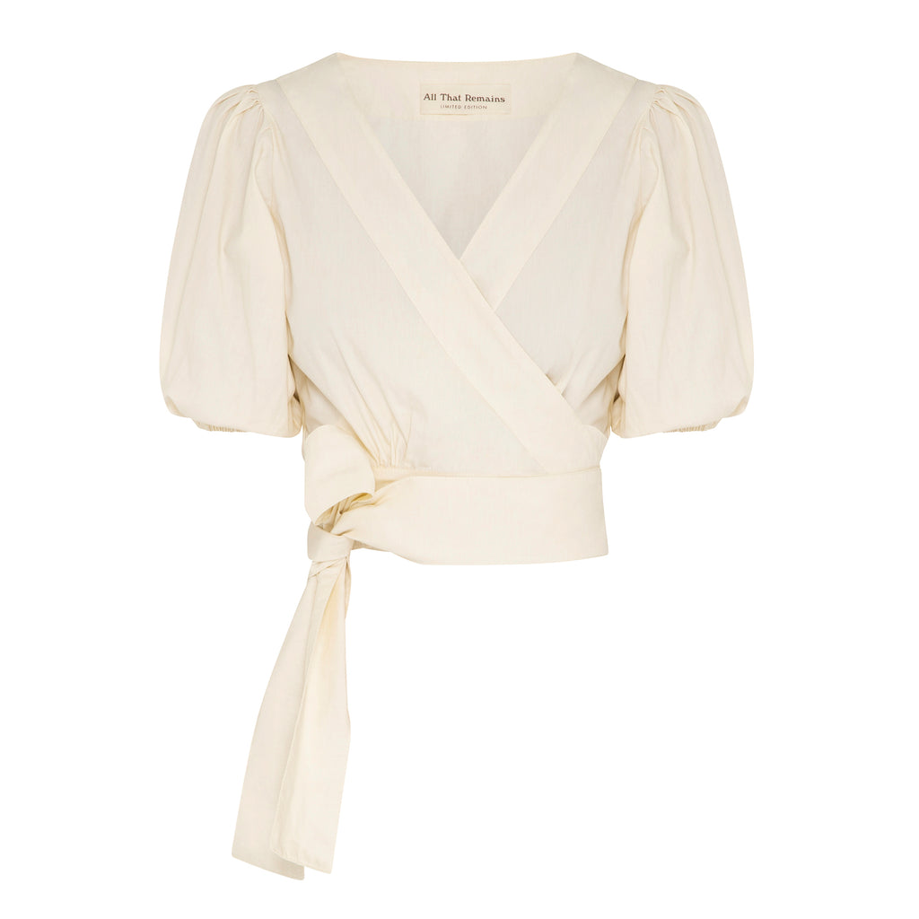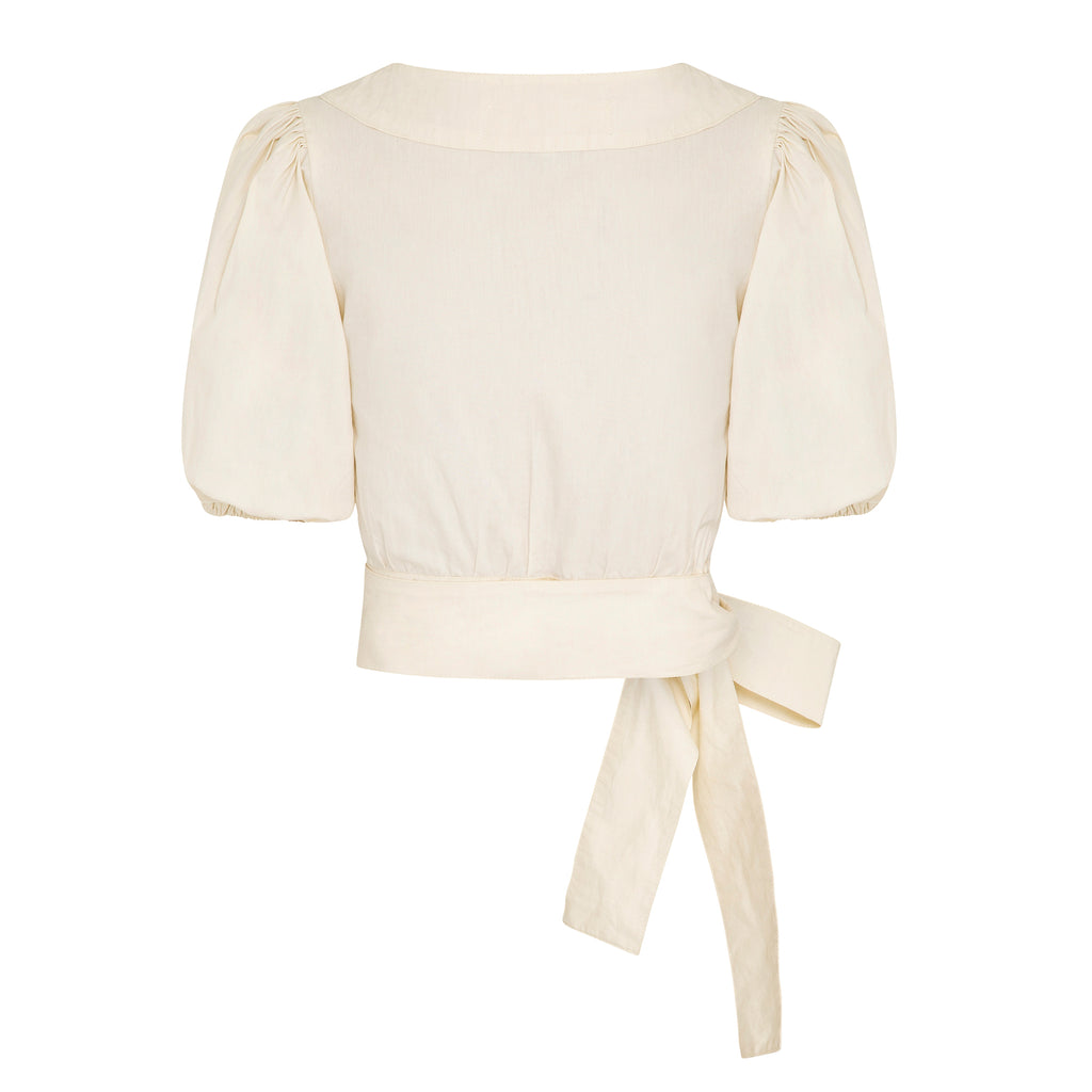 - Deep V neck, Wrap top, oversized baloon sleeve.