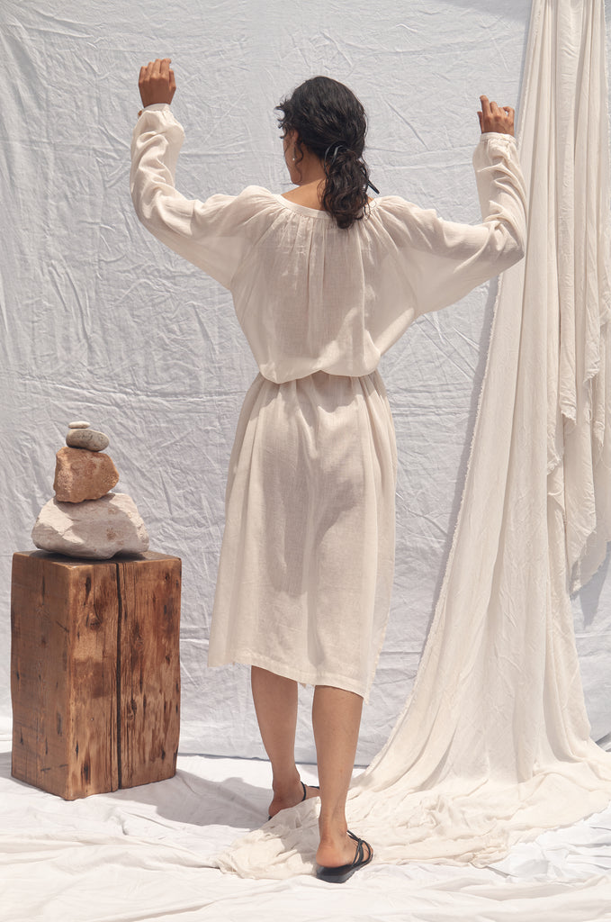 This handcrafted and individually made garment, means no two pieces can be the same. A slower and more intricate process that establishes a true human connection with the garments – something we believe to be very special and unique.